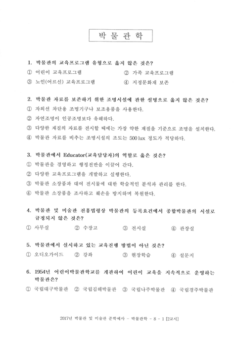 2017년 제18회 박물관 및 미술관 준학예사 박물관학