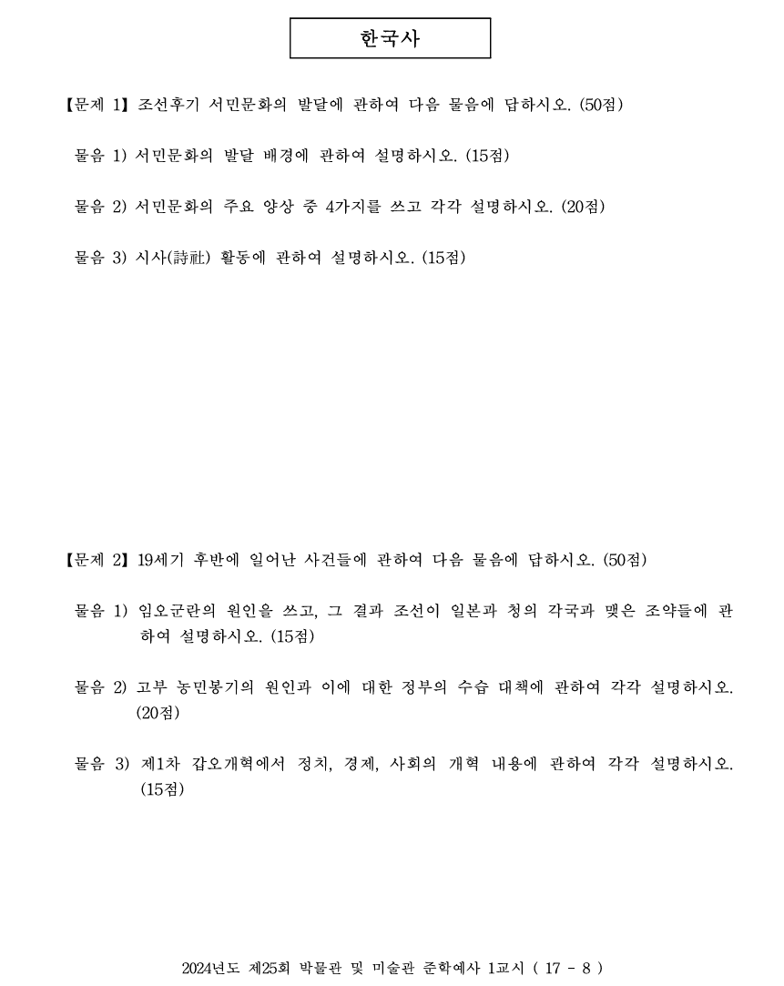 2024년도 제25회 박물관 및 미술관 준학예사 한국사 기출문제
